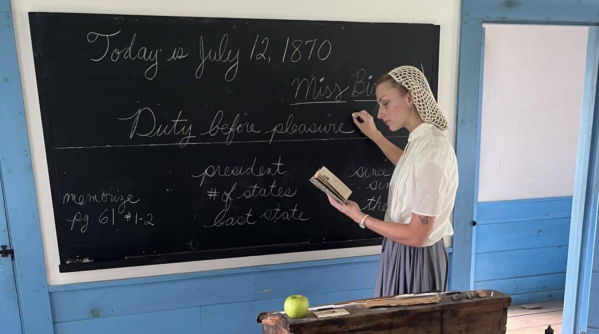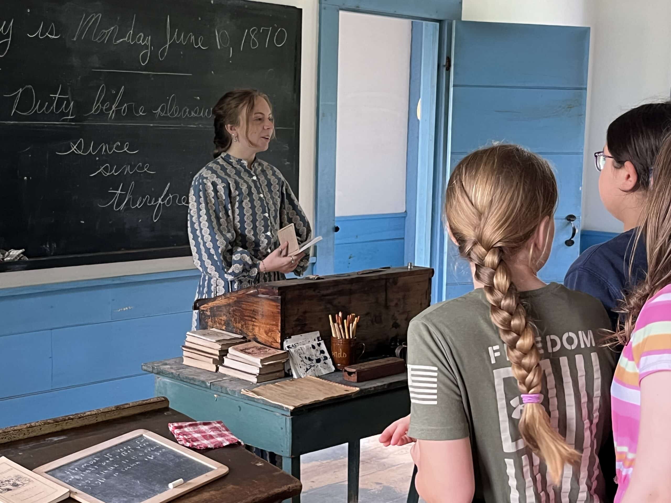 School in the Schoolhouse – come experience School in 1870 including doing declamations, practicing penmanship with a dip pen and showing how well you make your manners! Visit the schoolteacher anytime and the bell rings for the full day’s lesson 10:30 & 1:30